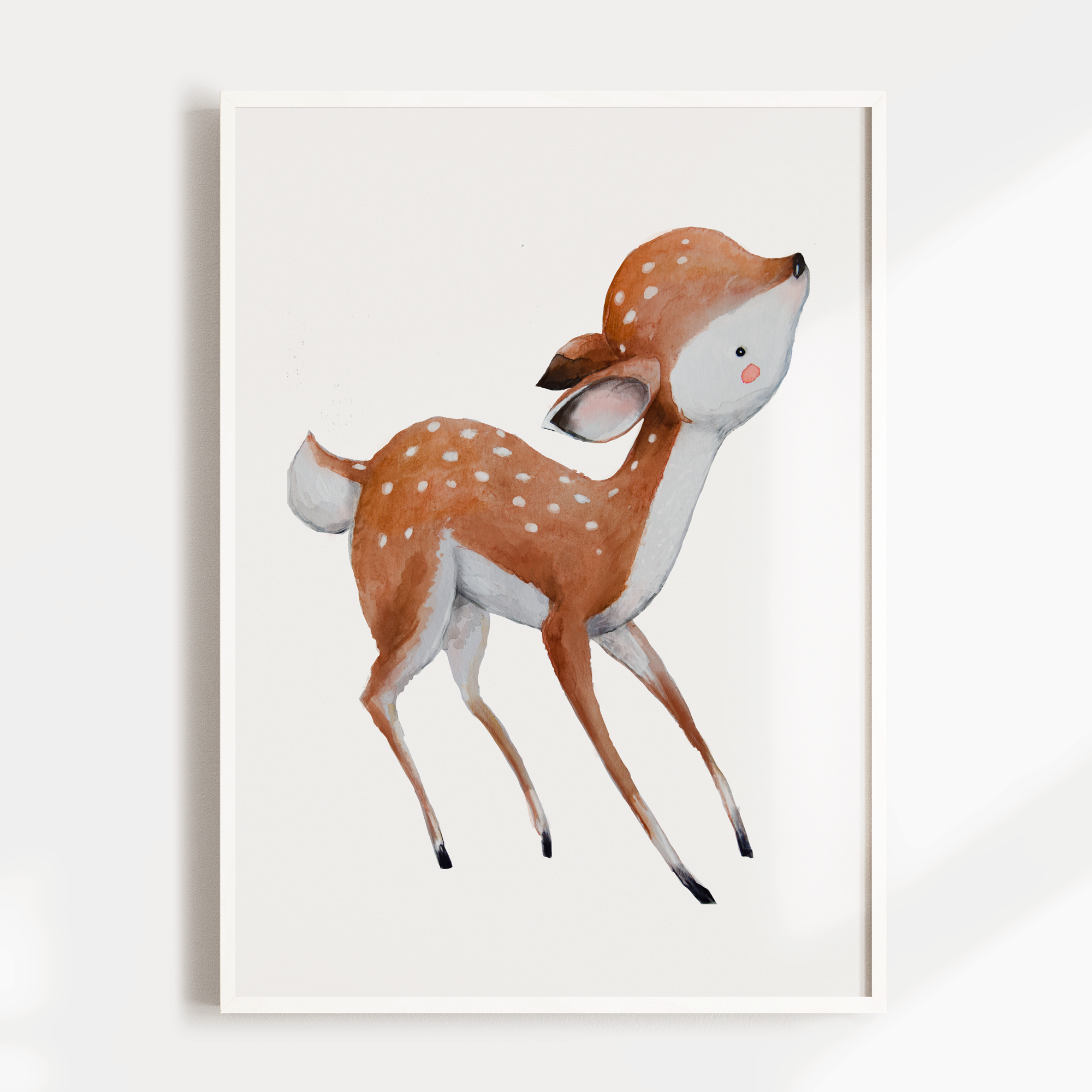 Perfect for the woodland nursery, bedroom or playroom decor, is this sweet baby deer wall art. Use as a stand alone piece in your little ones special space or co-ordinate with our other prints from this range.